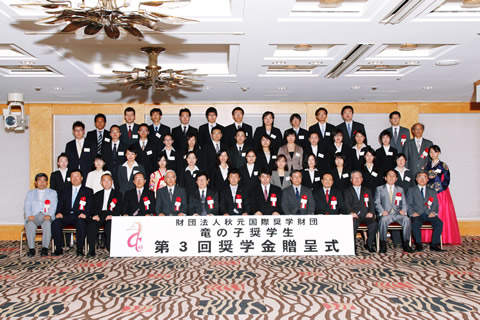 为预祝2009年度新录取的32名龙之子奖学生以及延长1年奖学金支付期限的3名奖学生前途广阔,财团董事、评选委员以及捐款者、支援者的各位一同鼓励奖学生们。